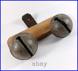 Please review all pictures for overall condition and size, as this helps form the overall condition/description of the item. Wear is consistent with age and use. One has a few cracks, the other has one light crack, couple of small holes/chips from age. Both still have original iron clappers.